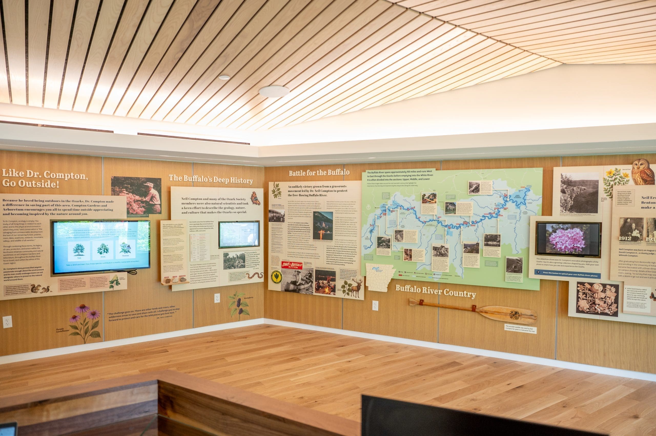 The renovation to be revealed in 2025 will provide a more immersive experience, featuring enhanced storytelling elements and original photography captured by Dr. Compton himself along the Buffalo River. The exhibit will highlight his passion for native plants, conservation, and the role he played in protecting America’s first National River.