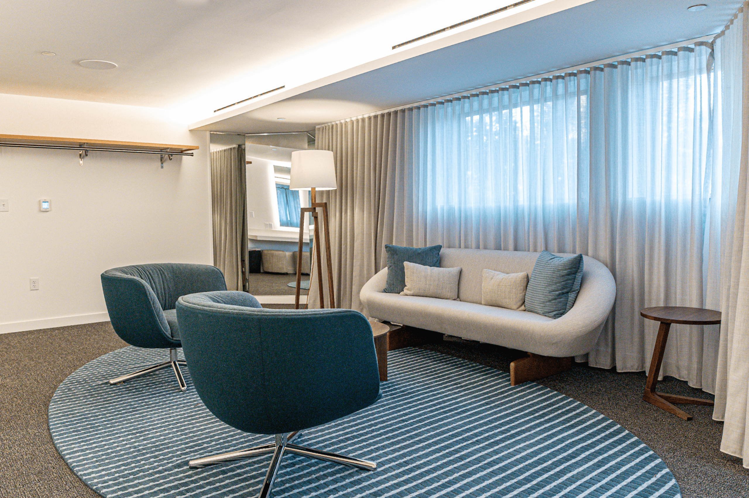 Two flexible meeting spaces are available for smaller groups, including a Large Conference Room that seats up to 16 and a Small Conference Room that seats up to 8. All conference rooms have access to the Conference Lounge, which includes a wet bar and relaxed seating. Whether you’re hosting a board meeting, retreat, or creative workshop, these spaces offer modern amenities in a serene natural setting.