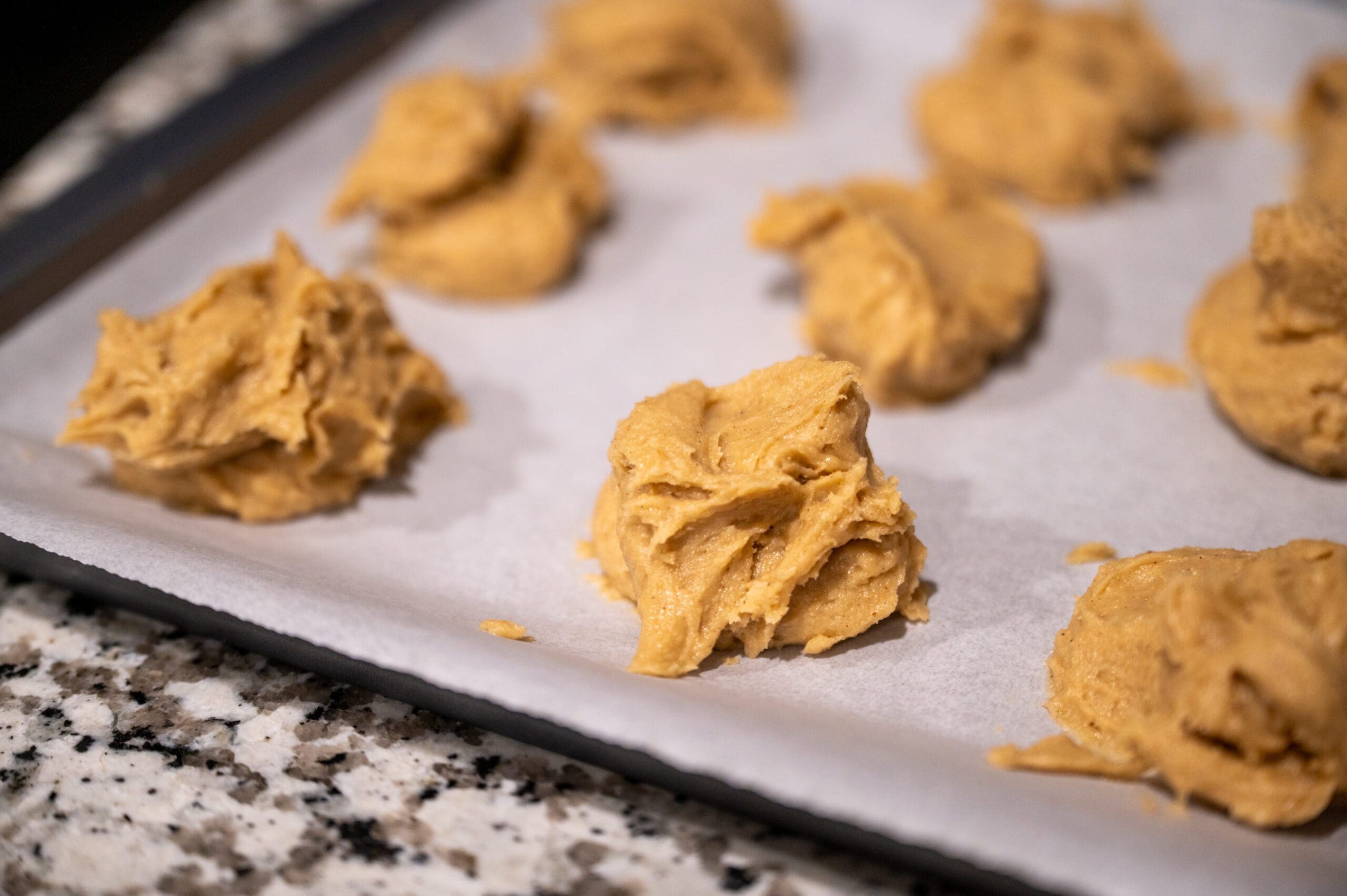 Drop rounded spoonfuls of dough onto your prepared baking sheets.